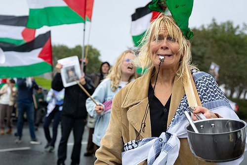 „Aftur og aftur verðum við að segja að Ísrael hafi engan rétt til að stöðva flotana á alþjóðlegu hafsvæði. Þetta er brot á alþjóðalögum. Ég vona að samlandi ykkar verði látin laus eins fljótt og auðið er, og hún komist heim heil á húfi.“