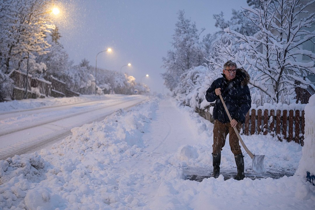 Einn vegfaranda sem ljósmyndari Heimildarinnar tók tali var í óða önn að moka bílinn sinn úr stæði til að ná í dekkjaskipti sem hann átti bókuð klukkan 9.