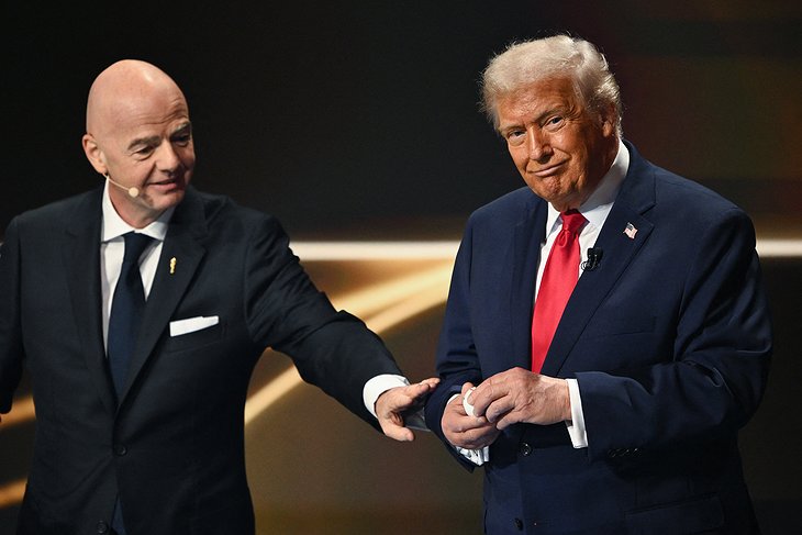 Forseti FIFA, Gianni Infantino, afhenti Trump í síðasta mánuði verðlaun frá alþjóðaknattspyrnusambandinu í aðdraganda þess að Bandaríkin halda heimsmeistaramótið í knattspyrnu.