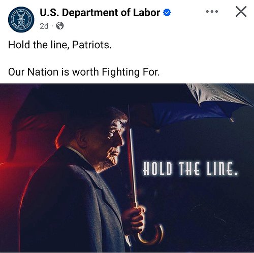 „Haldið víglínunni, föðurlandsvinir,“ segir við mynd af forsetanum með skyggt andlit í enn einni færslu bandarískra stjórnvalda. „Þjóð okkar er þess virði að berjast fyrir.“