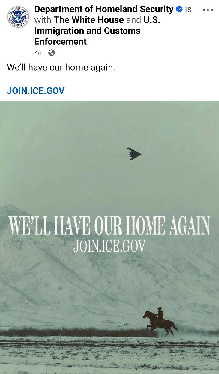 „Við munum endurheimta heimili okkar,“ segir Heimavarnaráðuneytið í auglýsingu og birtir slóð á umsóknarvef fyrir ICE-sveitirnar.