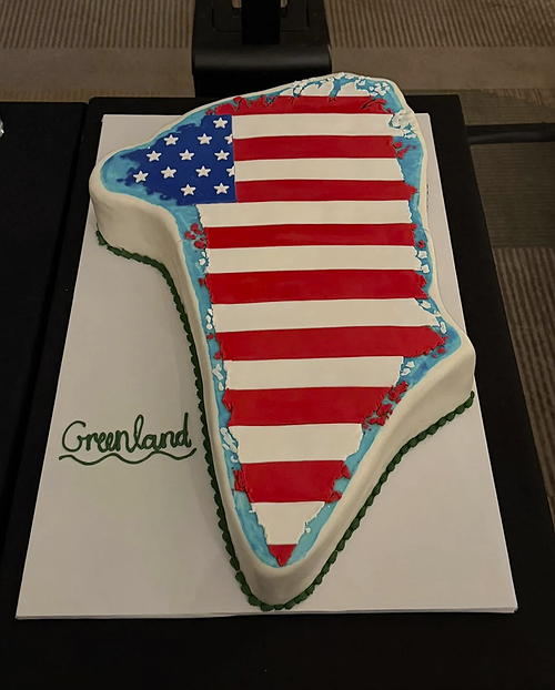 Í gærkvöldi snæddu bandarískir þingmenn úr flokki Repúblikana köku í líki Grænlands, skreytta bandaríska fánanum. Þá fékk einn þingmannanna, Andy Ogles, verðlaun um kvöldið fyrir tillögu sína um að gera Donald Trump kleift að sækjast eftir þriðja kjörtímabili, sem er óheimilt samkvæmt stjórnarskrá í dag. Þingkonan Anna Paulina Luna, sem situr í fulltrúadeildinni fyrir Repúblikanaflokkinn úr Flórída, birti mynd af kökunni.