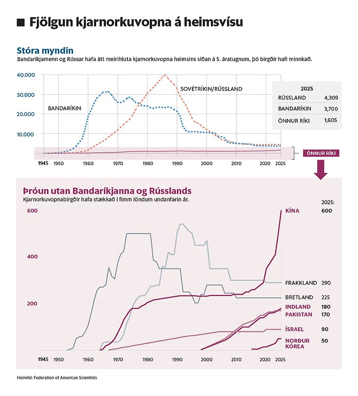 „Eftir örfáa daga verður heimurinn í hættulegri stöðu en nokkru sinni fyrr,“ sagði talsmaðurinn Dmitry Peskov, nokkrum dögum áður en Nýi START-samningurinn rennur út. Fyrsti START (Strategic Arms Reduction Treaty) var undirritaður 1991 af Bandaríkjunum og Sovétríkjunum, skömmu áður en þau síðarnefndu leystust upp. Samningurinn setti þak á eign kjarnorkuodda við 6.000 og langdrægar eldflaugar og sprengjuþotur við 1.600.