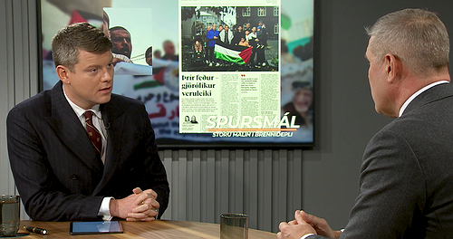 Stefán Einar lýsti því í viðtali við Bylgjuna í gær að hann hefði átt viðtöl við Bjarna Benediktsson, þáverandi forsætisráðherra, og Svandísi Svavarsdóttur, þáverandi formann Vinstri grænna, í þingkosningunum 2024, í þætti sínum Spursmáli, þar sem hann birti myndir. „Við birtum upplýsingar úr myndgreiningarbúnaði, njósnabúnaði, sem notaður er erlendis til þess að fylgjast með vígamönnum af þessu tagi. Þar var búið að keyra í gegn ljósmyndir af mönnum, meðal annars frá Palestínu, sem höfðu komið fram í viðtali í Heimildinni. Þessi búnaður staðfesti með óyggjandi hætti tengsl þessara manna við hryðjuverkasamtök á borð við Islamic Jihad.“