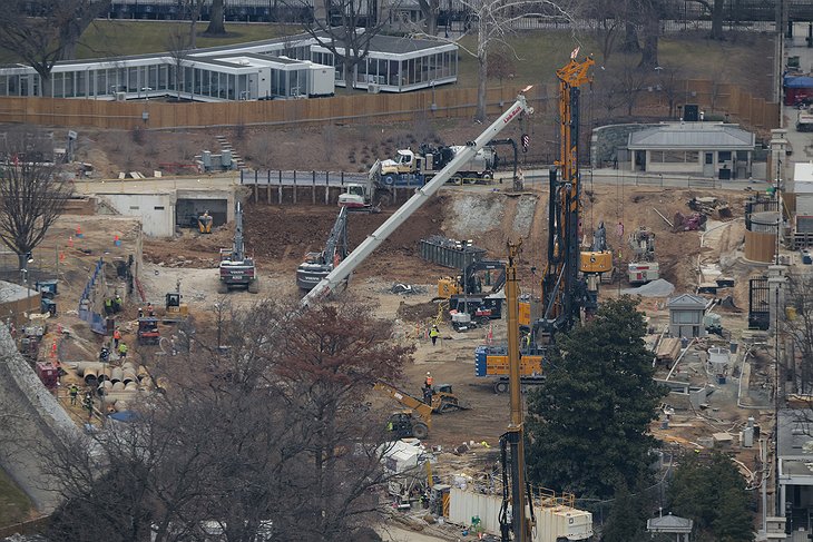 Vinnuflokkar hafa grafið fyrir byrginu í margar vikur og rifið niður eldri neyðaraðgerðamiðstöð forsetans, eða PEOC, sem var byggð í seinni heimsstyrjöldinni til að vernda forsetann, til að byggja eitthvað stærra, betra og dýpra neðanjarðar.