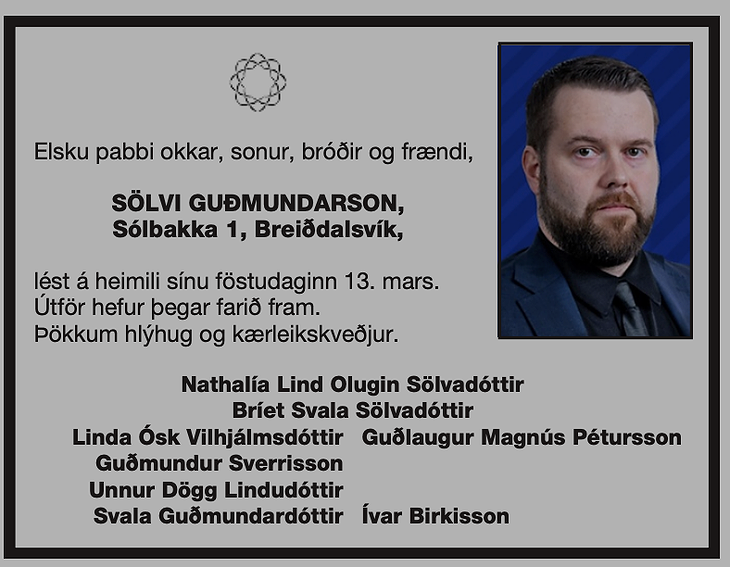 Sölvi birti í morgun færslu á Facebook-síðu sinni þar sem hann segir frá andlátstilkynningunni sem birtist í Morgunblaðinu.