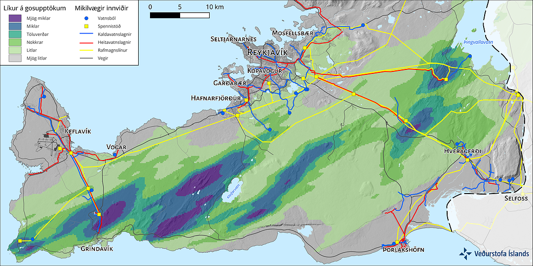 Raunar eru möguleg gosupptök, sem „litlar líkur“ eru á, undir mörgum nýjustu hverfum höfuðborgarsvæðisins. Þetta eru svæði sem liggja undir áhrifasvæði Krýsuvíkursvæðisins sem liggur allt frá Krýsuvík og norðaustur í Mosfellsdal.